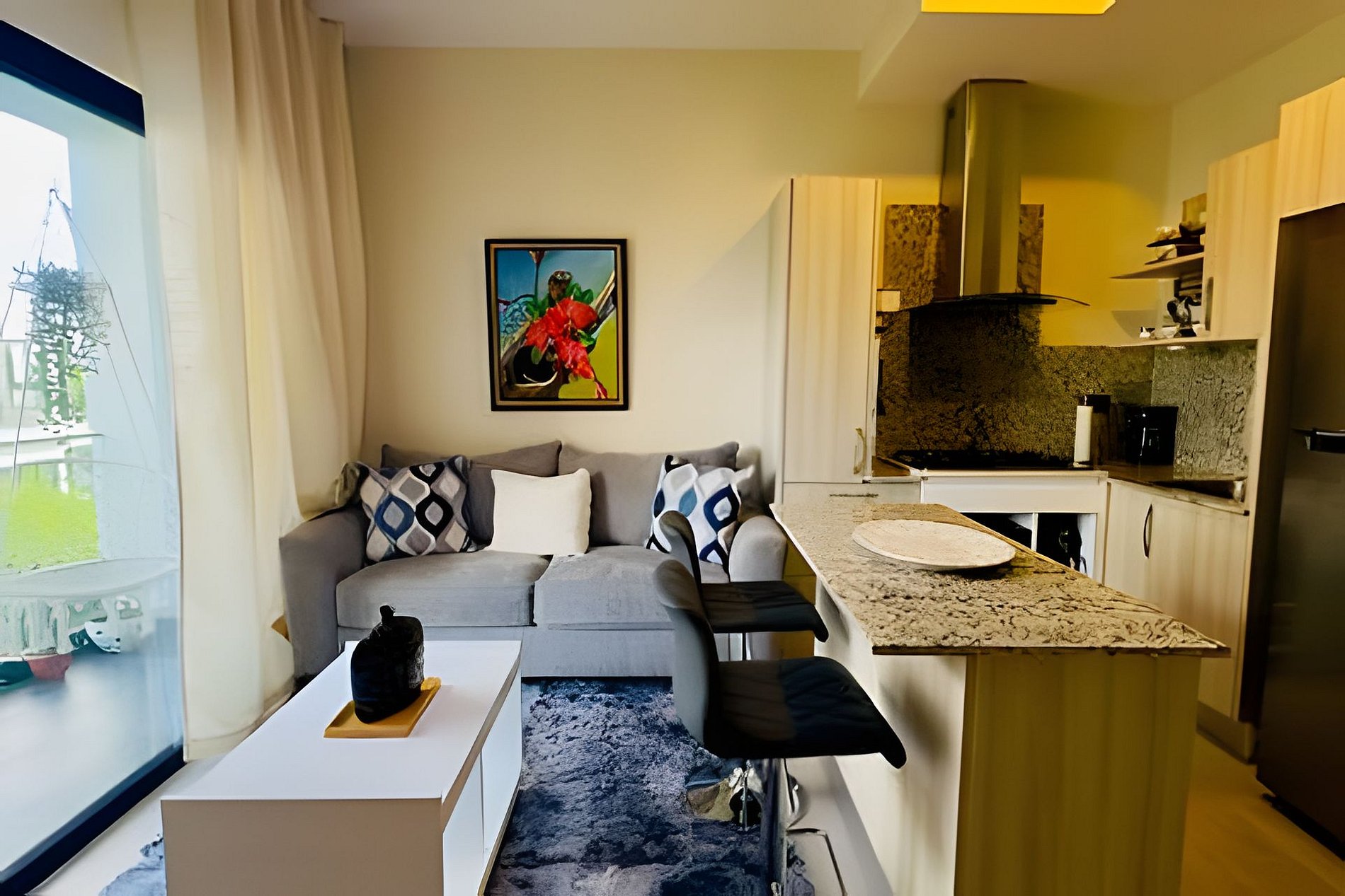 The apartment is fully equipped for a comfortable stay. King size bed in the bedroom and Full size sofa bed in the living room. Additional towels and sheets are available. Please note that, since the Vista Cana complex is still under development, it is possible that works will be carried out during weekdays. It is normal for there to be some noise during the morning hours while you are outside the accommodation. Take into account the use of electricity, since it is very expensive in the area. Turn off all air conditioners when you leave the unit.